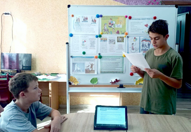 На занятиях кружка «Вместе в будущее», в рамках «Стандарт по подготовке детей-сирот и детей, оставшихся без попечения родителей, к самостоятельной жизни» воспитанники Мелитопольского областного центра социально-психологической реабилитации детей обсудили две важные темы: «Права лиц с ограниченными возможностями здоровья» и «Понятия вербального и невербального общения».