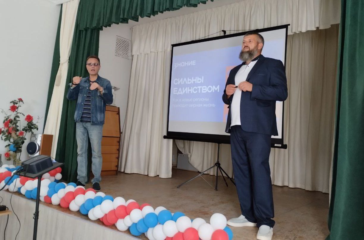 Лектор общества "Знания", учитель истории Белостенный В.В. рассказал присутствующим о Воссоединении исторических регионов с Российской Федерацией.
